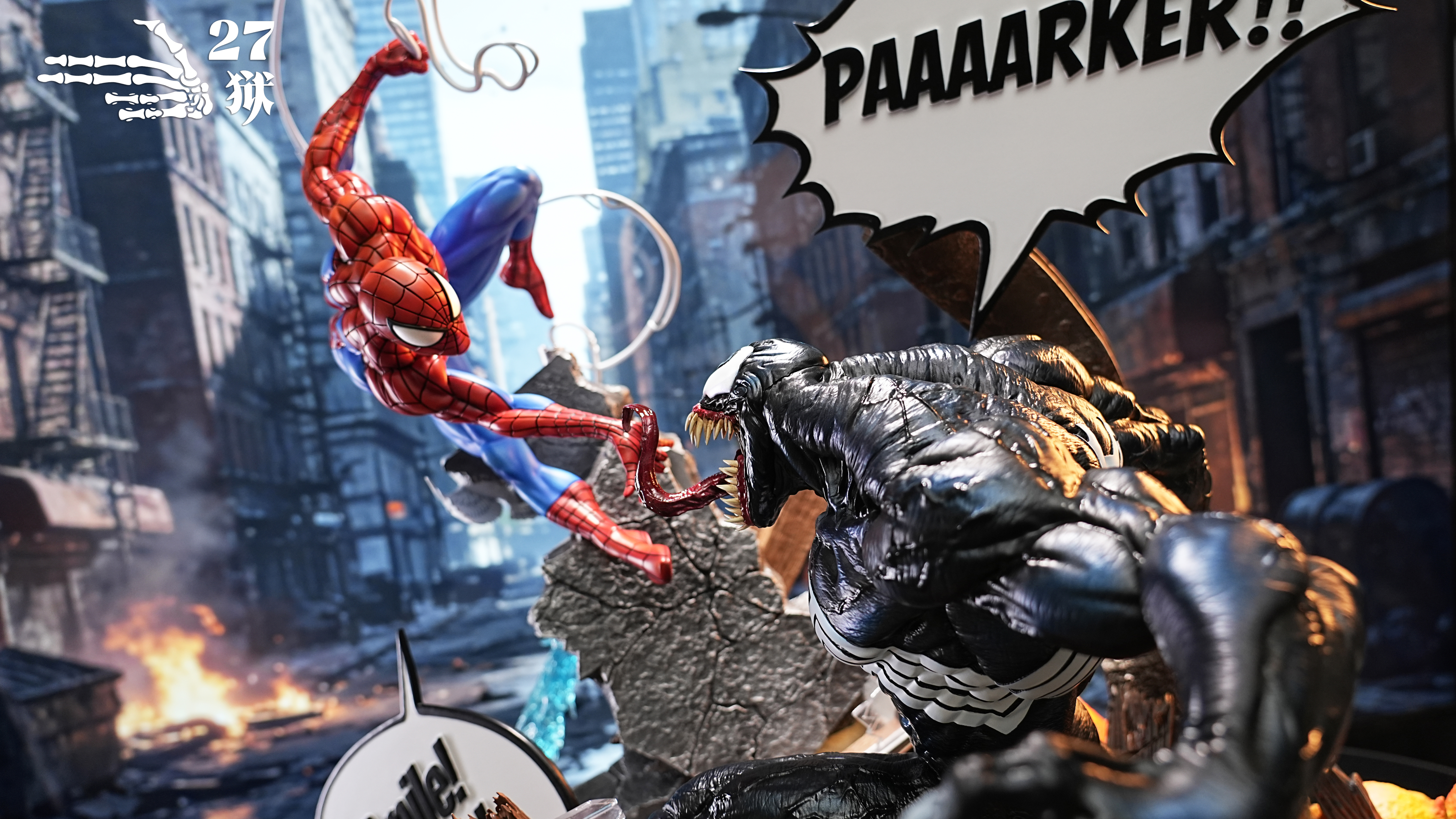 Marvel漫威 對戰場景雕像 蜘蛛人vs毒液