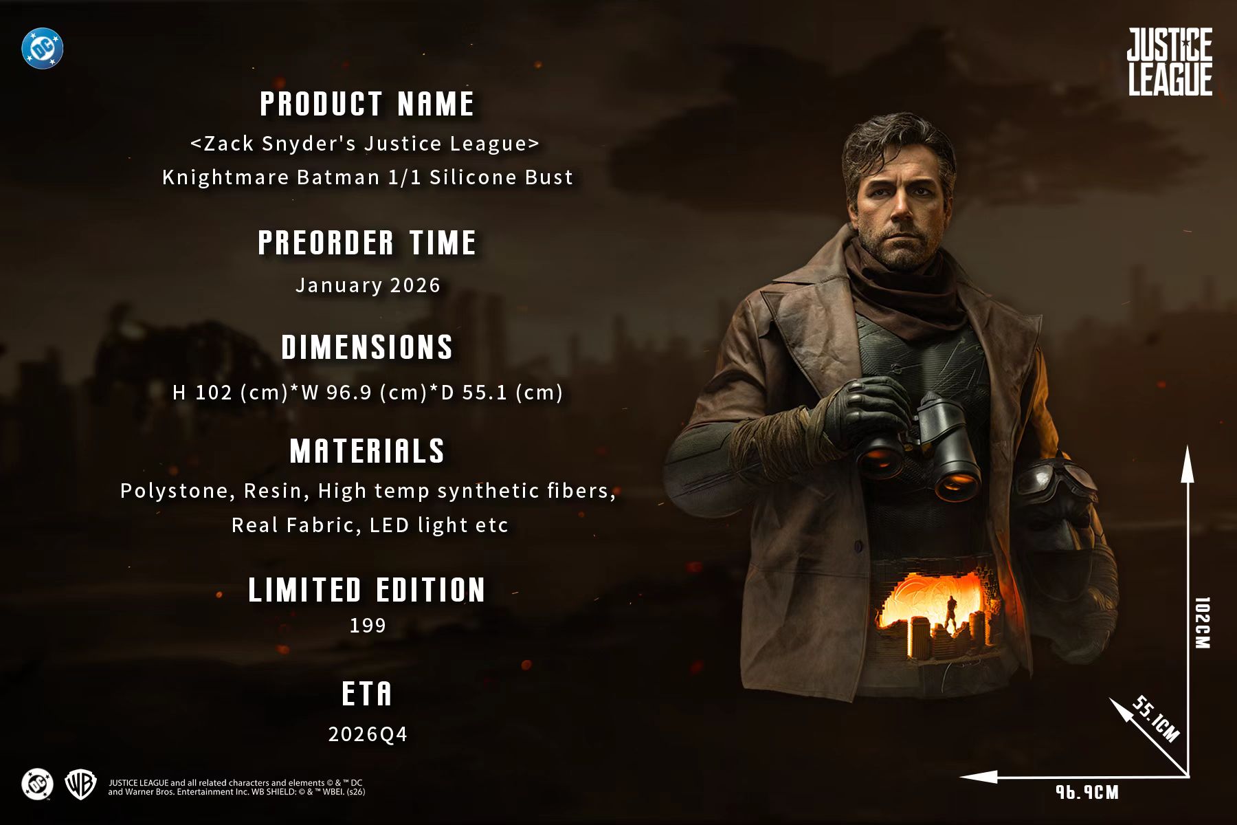 《紮克·施耐德版正義聯盟》1/1半身像 噩夢版蝙蝠俠