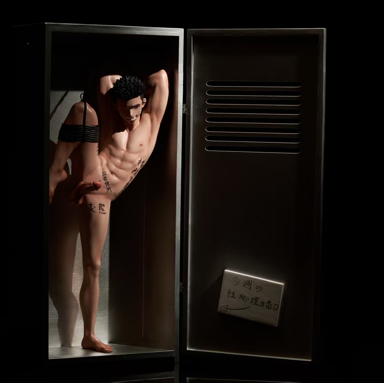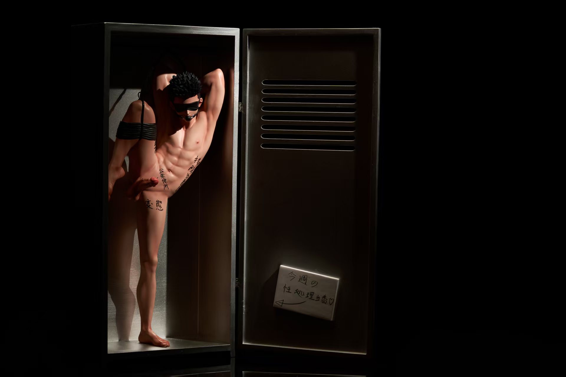 配置:人物主體➕兩個頭雕➕鐵鏈➕櫃子(門可開關)➕三個神秘配件➕額外贈送鎖神秘配件(共4個);購買了星的朋友第二款更衣櫃贈送特別配件