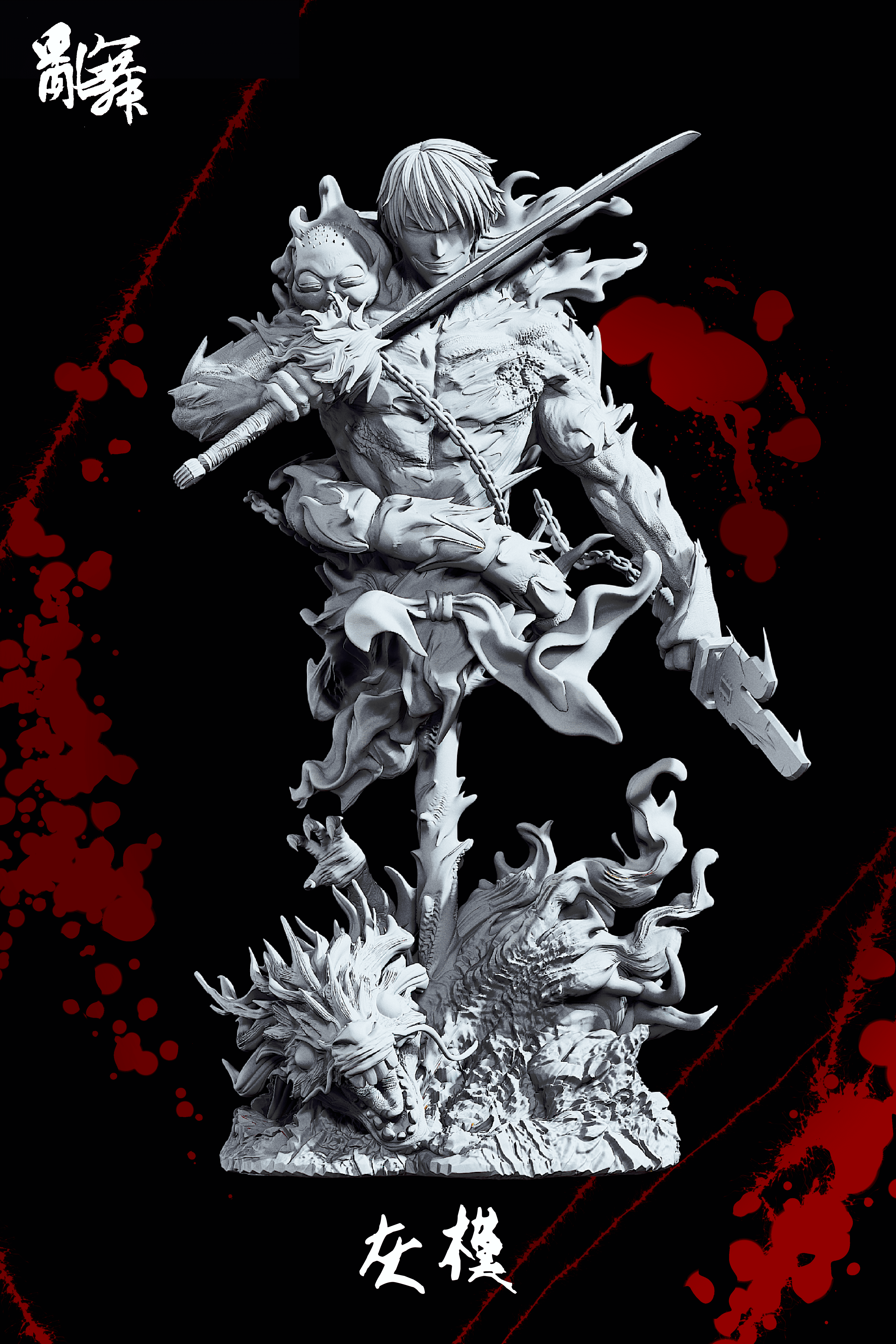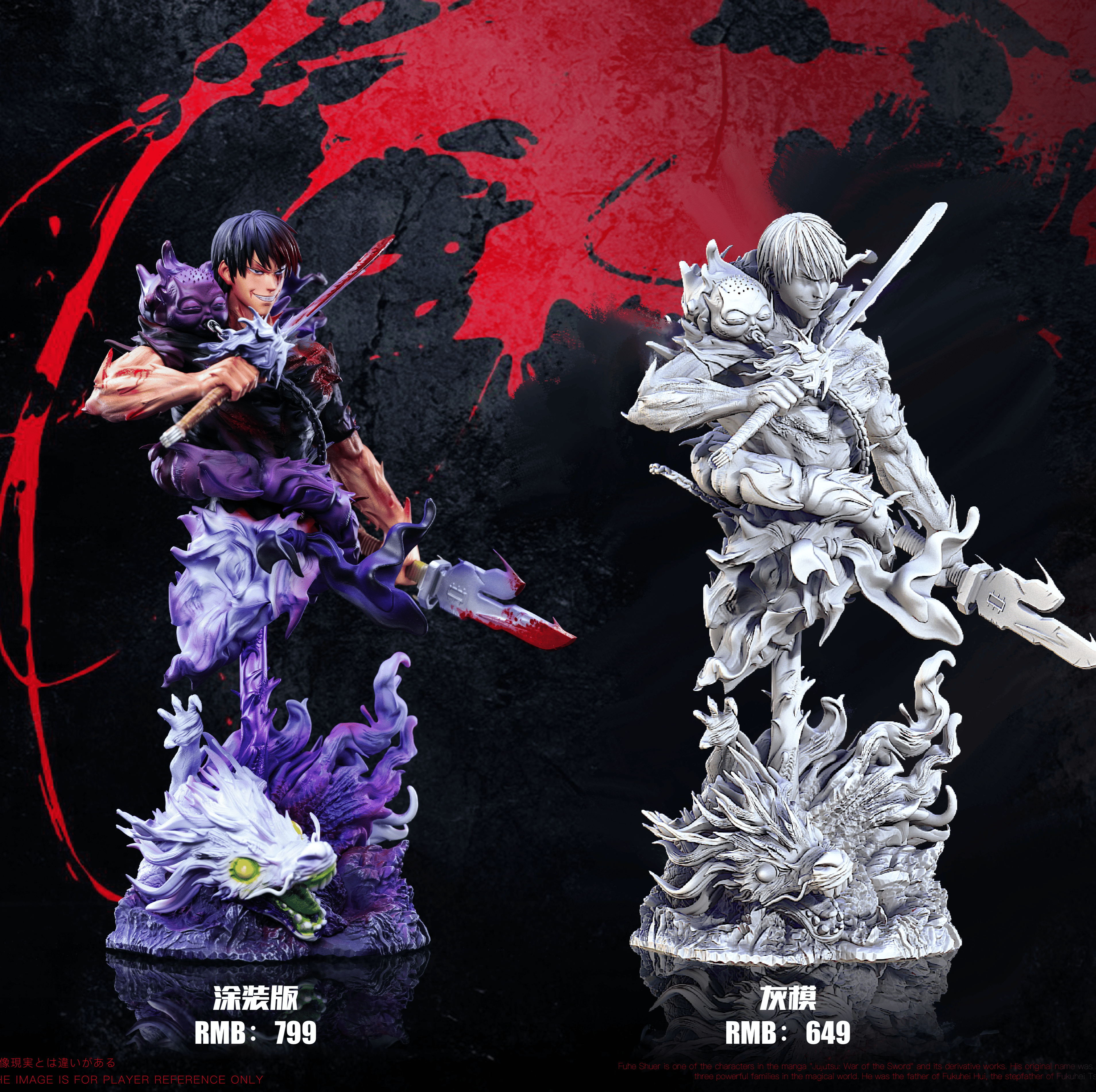 ● 特色:整體采用水墨結合破碎風建模,造型極具張力,局部采用熒光漆效果 紫光燈照射下可變色