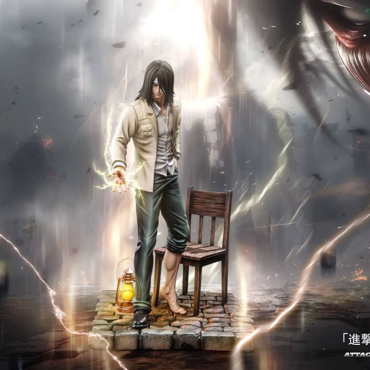 配置:場景還原木椅➕煤油燈➕石磚地底座,仿佛下一秒就要變身巨人,宿命感直接拉滿