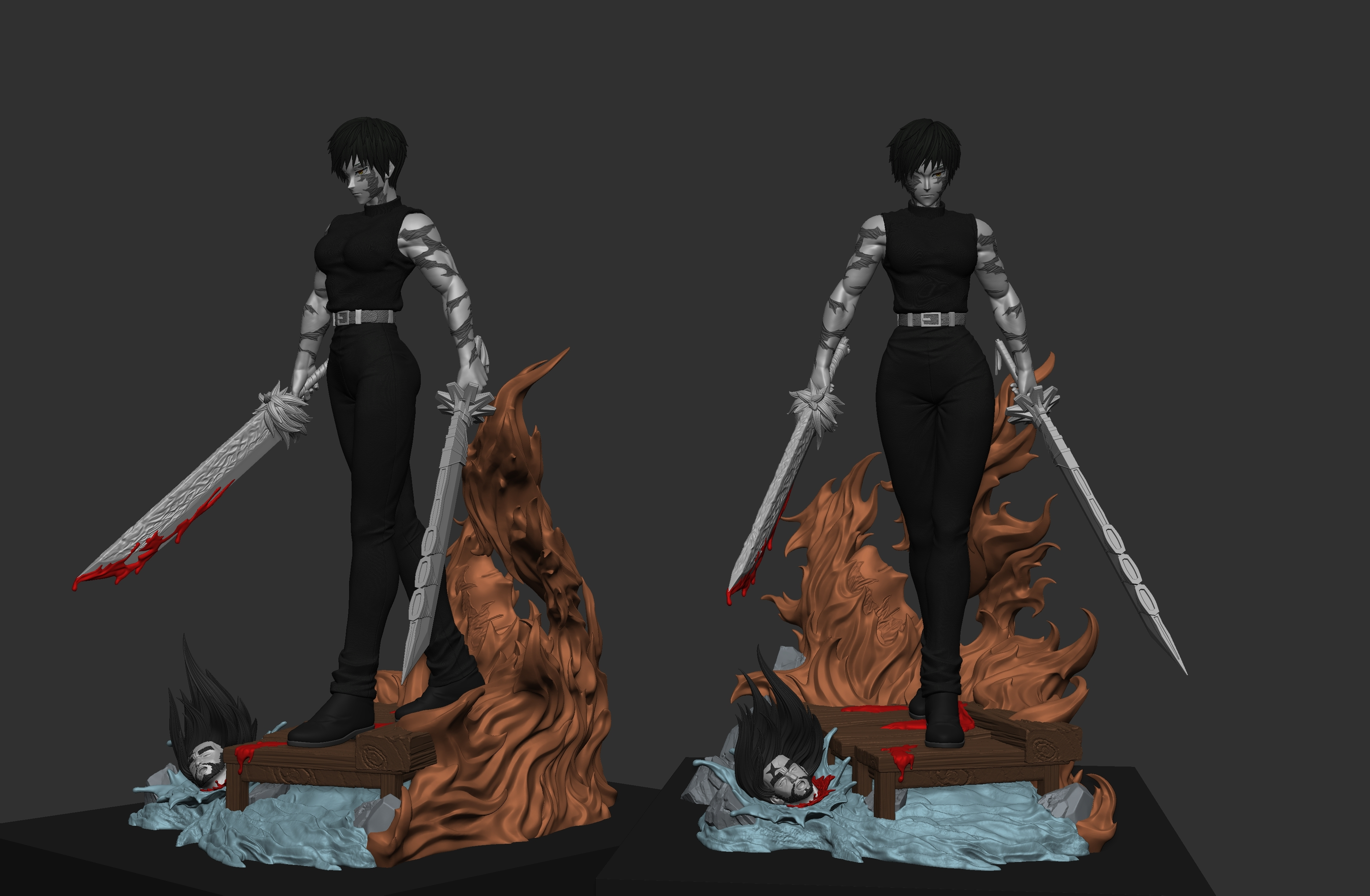 配置:配件包-替換拿雙刀上半身➕新頭雕(頭雕無法互相替換)➕底座